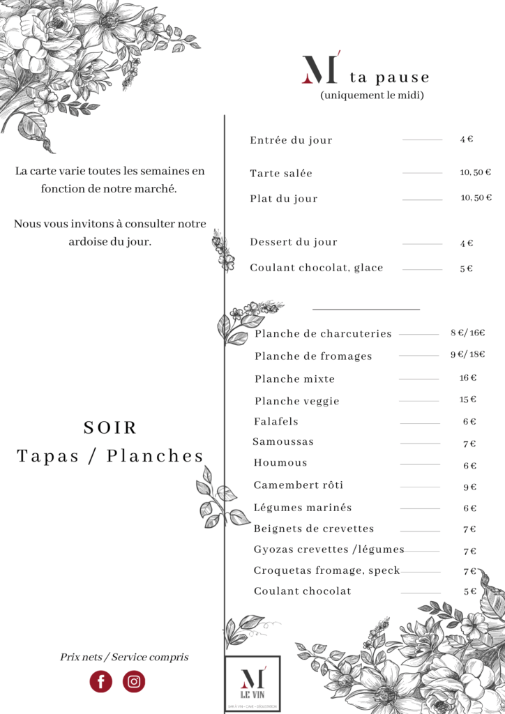 Le soir nous servons des planches et des tapas à partager que nous changeons régulièrement suivant notre inspiration.